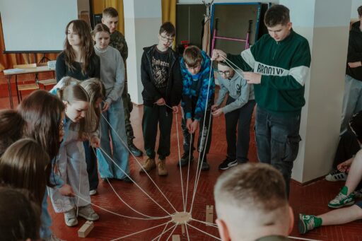 A potem konkret „poczucie własnej wartości – hejt” warsztaty Pani pedagog Agnieszka Jackowska oraz gra „wieża”: współpraca, podział ról, presja czasu. Niby zadanie, a emocje jak w finale.