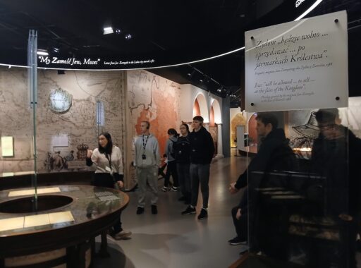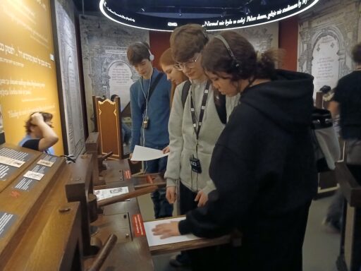 Pierwszym punktem programu było Muzeum Historii Żydów Polskich POLIN, gdzie mogliśmy w nowoczesny i angażujący sposób poznać historię, kulturę oraz dziedzictwo Żydów polskich. Multimedialne wystawy zrobiły na wszystkich ogromne wrażenie i skłoniły do refleksji oraz wielu rozmów.